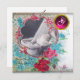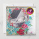 Design floral élégant, drôle de style vintage avec un bébé et cigogne volant parmi les belles roses, roses rouges, fleurs de printemps bleu et une dynamique, brillante, rose, fuchsia pierre de rubis 3D. par Bulgan Lumini.