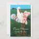 Elégant, drôle, design vibrant, brun rose turquoise bleu brillant, fleurs blanches pour bébé jumeau et petite fille avec une cigogne fantaisie dans le champ vert, la nature sous le ciel bleu, redessiné de vintage.