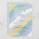 Super bébé ! Cette jolie invitation à la douche pour bébé garçon est parfaite pour un baby shower hippie, rétro ou les années 70 thème. Avec son texte les années 70 style et ses vagues colorées bleu pastel, c'est amusant et fantaisiste, tout comme un bébé rebondissant.