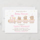 Cette invitation de baby shower mignonne et fantaisiste présente un train à l'aquarelle en rose pastel, jaune et marron avec des oursons adorables. Le texte combine une écriture manuscrite et des polices serif pour un look élégant et moderne. C'est parfait pour une baby shower sur le thème des ours ou des trains.