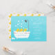 Canards adorables dans une baignoire avec pommeau de douche sur un arrière - plan bleu pour un baby shower triplet. Retournez notre douce invitation pour voir un canard coordinateur pour une touche spéciale supplémentaire. Visitez notre boutique pour voir les articles de douche correspondants. Cette invitation est également disponible pour les jumeaux et triplets !