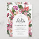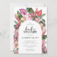 Éloignez-vous au paradis avec cette Invitation Baby shower Tropical. Cette belle invitation est remplie de touches élégantes et modernes, de fleurs romantiques et de couleurs vives. L'étonnante aquarelle comprend des feuilles de palmiers verts et de monstères, des orchidées magenta et fuchsia vives et des fleurs d'hibiscus roses. Trouvez les articles correspondants dans la collection florale tropicale colorée.