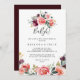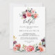 Ce barbecue tropical coloré BabyQ baby shower invitation est parfait pour un baby shower simple en couple ou un bébé saupoudré. Le design présente des fleurs élégantes illustrées blanches, roses, rousses, bordeaux et violettes disposées en de beaux bouquets avec feuillage vert.