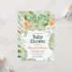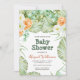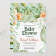 Célébrez dans le style avec cette invitation à baby shower à thème tropical avec des feuilles luxuriants de palmiers verts et des fleurs orange et blanche vibrantes. Entièrement personnalisable pour votre journée spéciale !