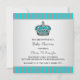 Elégante invitation au baby shower prince en argent et bleu turquoise. Cette belle invitation au baby shower prince bleu turquoise est facilement customisée pour votre fête ou événement en ajoutant simplement vos détails d'événement, le style de police, la taille et la couleur de police et le libellé. Veuillez noter que tous les modèles d'invitation et de carte que vous trouverez sur Zazzle sont des graphiques imprimés sans bijoux, arcs, surélevés, gaufrés, ou des pièces ou pièces ajoutées.