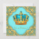 baby shower prince bleu et or turquoise avec couronne bleu et or turquoise sur un bel arrière - plan tourbillon bleu et or turquoise. Cette jolie invitation au baby shower princier bleu et or turquoise est facilement customisée pour votre événement en ajoutant simplement vos détails dans le style de police et la couleur, le libellé et la disposition de votre choix.