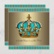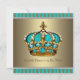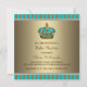 Elégante invitation au baby shower princier bleu turquoise et or couronne. Cette belle invitation au baby shower prince turquoise et or est facilement customisée pour votre fête ou événement en ajoutant les détails de votre événement, le style de police, la taille et la couleur de police et le libellé.