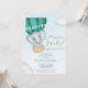 Cette invitation fantaisiste au baby shower présente un adorable petit éléphant volant au milieu des nuages dans une montgolfière turquoise sur un arrière - plan bleu aquarelle. Facile à personnaliser avec des options personnalisées en cliquant sur le bouton "Personnaliser".
