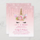 Plutôt rose ! Adorable rose, violet mousseux unicorne visage thème bébé fille invitation douche. Disponible dans une gamme de types de cartes et de papier et peut être transféré à d'autres types de produits.