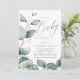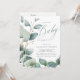 Boho moderne chic vert sauge, bleu poussiéreux, or aquarelle eucalyptus succulent feuille élégante invitation baby shower script élégant.