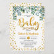 Invitation baby shower. Design botanique avec des feuilles verdoyants et de l'or de parties scintillant faux. Fonctionne avec la police de script et les points de confetti. Message-moi si vous avez besoin d'une personnalisation plus poussée.