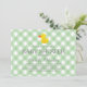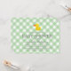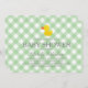 Réchauffez vos âmes d'invités avec notre chère Petite Duckie Baby shower Invitation! Une illustration de canard en caoutchouc doux flotte au-dessus d'un arrière - plan en plaid doux fini en vert.