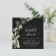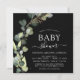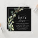 Cartes d'invitation Baby Shower Fille ou Garçon Fleur de Eucalyptus Noir, Plante Grasse, Aquarelle Moderne sur fond blanc - comprend une typographie élégante et moderne avec des feuilles botaniques et de la verdure pour la célébration de la future maman.