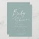Script moderne Sage Green Baby shower Invitation. Cliquez sur le bouton Personnaliser pour customiser cette conception avec vos détails.
