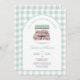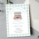 Célébrez la maman à être avec notre mignonne invitation sur le thème de la culture locale. Le design est composé d'un joli stand d'aquarelle sur un arrière - plan en vichy vert, ce qui en fait un endroit à la fois élégant et charmant. Utilisez les outils de conception pour customiser le texte. Aussi disponible en téléchargement numérique.