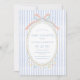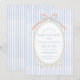 Des rubans bleus et roses aux accents floraux sur un arrière - plan à rayures rustiques bleu et blanc créent une douce invitation au baby shower vintage. Coordination des polices bleues. Une invitation parfaite pour un événement parfait. Style neutre pour le genre. Satisfaction 100% client chez Zazzle tous les jours.