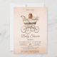 Célébrez l'arrivée imminente avec style avec cette invitation de baby shower vintage classique. Avec une illustration magnifique d'un landau ancien, ce design unisexe ajoute une touche d'élégance à n'importe quel baby shower.