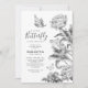 Des invitations branchées à la douche bébé en noir et blanc avec un arrière - plan blanc, d'élégantes fleurs d'aquarelle en niveaux de gris, des papillons et une modèle de baby shower moderne qui peut être facilement personnalisée.