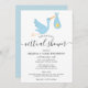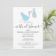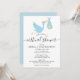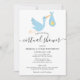 L'invitation à saupoudrer le baby shower virtuel en ligne longue distance avec une jolie cigogne bleue portant une livraison très spéciale, sur un arrière - plan blanc. Ce mignon baby shower, arrosé ou en couple se douche par mail est parfait pour tous les petits qui sont en route. Ajoutez vos détails spéciaux dans la typographie moderne. Conçu par Thisnotme©
