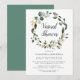 Ne laissez pas la distanciation sociale vous empêcher de célébrer une naissance ou un mariage à venir. Célébrez l'utilisation virtuelle de la technologie. Ce design botanique élégant et traditionnel vous donne beaucoup de texte modèle pour expliquer le processus. Il présente une belle couronne d'eucalyptus vert profond.