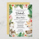 Célébrez l'arrivée prochaine de votre précieux bébé garçon avec cet élégant, chic et joli "Virtual Baby shower Invitation" avec de mignons animaux safari dans la jungle conviviale avec des masques sur de belles aquarelles tropicales florales avec feuille de la jungle verdoyante. Tous les textes sont pré-arrangés pour que vous personnalisiez facilement et rapidement avec vos détails baby showers.