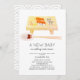 Ce kawaii mignon "un nouveau bébé roule en ville", neutre en sexe virtuel/zoom/baby shower en ligne invitation comprend des sushis et des rouleaux sur un panneau en bois avec une paire de baguettes en aquarelle sur un arrière - plan blanc. L'envers est composé d'un arrière - plan blanc avec des motifs gris. Modifiez la couleur arrière - plan à la fois sur le devant et sur le dos et personnalisez-la selon vos besoins.
