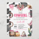 Saddle up pour une célébration mémorable avec cette invitation baby shower "Western Pink Wild West Country Watercolor Coquette Cowgirl Rodeo". Parfait pour accueillir une petite cow-girl, cette invitation mêle des ambiances occidentales rustiques à des accents d'aquarelle rose douce, donnant le ton d'un baby shower sucré, élégant, sur le thème du rodéo.