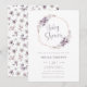 Carton d'invitation Baby-Showing Violet. Douce, rêveuse et romantique, cette élégante invitation à un baby-shower présente une superbe guirlande de feuilles et de fleurs à l'aquarelle peinte à la main dans des tons monochromes de violet, prune et rose pâle avec un texte et une écriture violette assortis. Le verso de l'invitation présente un motif fantaisiste. Trouvez des articles assortis dans la collection Elegant Purple Botanical Wedding.