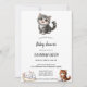 Babyshower chat invitation Adorable bébé douche invitations avec une aquarelle illustration d'un chaton tabby dans un champ de fleurs sauvages. Conception hors centre avec accents de script. L'envers est vert sage. Purr-fect pour un baby shower à ressort.