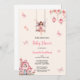 FAIRY PINK BABYSHOWER INVITATION Ce design fantaisiste présente une douce illustration de fées forestières magiques, une jolie maison de champignons et d'élégantes fleurs d'aquarelle rose et rousse.