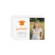 Cette invitation à la remise des diplômes présente un thème simple noir et blanc avec un casquette orange et un goût d'or. Ajoutez une photo et un texte de personnaliser sur le devant et le dos pour inclure tous les détails de votre fête de remise de diplômes.