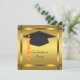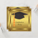 Arrière - plan d'or avec l'invitation à la fête de remise de diplômes de bonnet noir et or. Customisez avec les détails de votre partie, le style de police et la couleur de police.