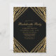 Black Gold Géométrique Lignes Abstraites Bachelorette Invitations. Cet élégant design abstrait moderne et tendance présente des lignes de parties scintillant dorée brillante avec des confettis sur un arrière - plan noir solide.