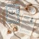Ce design d'inspiration côtière allie flores d'aquarelle et éléments nautiques de charme comme un dauphin, voilier, boussole, poisson, étoile de mer et mouette. L'élégante palette marine et le doux style peintre créent une esthétique fantaisiste sur le thème de l'océan, parfaite pour une célébration balnéaire pleine de charme et d'aventure.