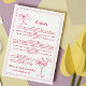 Préparez-vous à fêter en style avec ce joli Ribbon Bachelorette Trip & Itinéraire Invitation, parfait pour votre prochaine escapade de filles! Cette invitation élégante et moderne présente un design de ruban chic associé à une illustration de fille de cocktail amusante à l'intérieur d'un verre à martini, ajoutant une ambiance amusante et flirtée à la carte. Le côté avant de l'invitation affiche tous les détails essentiels du voyage, tandis que le côté arrière comprend un itinéraire détaillé, s'assurant que vos invités savent exactement à quoi s'attendre tout au long du week-end. La carte est conçue avec un modèle de libellé facilement modifiable, ce qui en fait une brise à personnaliser avec vos détails de l'événement. Que vous soyez à la station balnéaire, en cabine de montagne ou en ville animée, cette invitation donne le ton parfait pour une fête de bachelorette mémorable. Idéal pour les invitations à des voyages en bachelorette, ce design est également idéal pour les invitations à des week-ends en bachelorette, les invitations à des voyages pour filles et les escapades en bachelorette à destination. L'illustration ludique en martini, combinée au joli ruban, donne à la carte une esthétique moderne et féminine, ce qui la rend parfaite pour les mariées branchées et élégantes et leur équipe. La section itinéraire modifiable à l'arrière vous permet d'inclure des détails tels que les heures d'arrivée, les horaires d'activités, les réservations de dîner et les plans de fête, gardant tout le monde dans la boucle. Cette invitation est également parfaite pour les invitations électroniques ou les cartes imprimées, offrant une flexibilité pour le partage numérique et l'envoi physique. Que vous planifiez une escapade tropicale, une retraite à la campagne viticole ou un souffle à Las Vegas, cette carte ajoute une touche d'élégance et de plaisir à vos plans de fête. Ses illustrations modernes de style doodle lui donnent une ambiance ludique et chic, ce qui en fait l'endroit idéal pour les soirées bachelorette avec un thème tendance et élégant. Parfait comme invitation à la bachelorette avec un itinéraire, cette carte est également adaptée aux invitations de week-end pour les filles, aux cartes de bachelorette modernes et aux célébrations avant-mariages amusantes. Il fonctionne magnifiquement pour les fêtes de bachelorette locales et de destination, donnant à vos invités un aperçu élégant de l'excitant week-end à venir. Ce design modifiable vous permet de customiser facilement les couleurs, les polices et le texte, en vous assurant qu'il correspond parfaitement à votre thème de fête. Faites de votre voyage en bachelorette un voyage inoubliable avec ce Bachelorette Ribbon Cute Trip & Itinéraire Invitation, la combinaison parfaite du style, de la fonctionnalité et du charme. Laissez la célébration commencer par une touche de créativité et d'esprit !