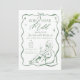 Planifiez la célébration parfaite avec cette Invitation Itinéraire du week-end des filles à la bachelorette légère! Conçue dans un style moderne et fantaisiste, dessinée à la main, cette carte d'itinéraire chic sauge vert bachelorette est idéale pour partager votre programme de week-end de fête de mariée. Parfait pour un voyage décontracté pour filles, une bachelorette destination ou un week-end de douche nuptiale relaxant, ce design donne le ton pour une escapade amusante et mémorable. Utilisez-le comme encart d’itinéraire de bienvenue, invitation à la bachelorette ou carte d’agenda pour le week-end de vos filles. La palette verte de sauge apaisante s'allie magnifiquement avec des thèmes boho, minimaliste ou mariage moderne, ce qui vous permet d'égaler facilement votre décor événementiel. Une façon élégante de garder l'équipe de la mariée à l'horaire tout en célébrant de façon élégante et cosy.