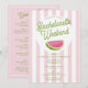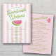 A colorful hand drawn watercolor watermelon summer theme design featuring different types of alcoholic drinks. A beautiful design perfect for Bachelorette weekend parties. This Bachelorette Party invitation includes a weekend itinerary on the back. A retro modern vintage red and pink striped Bachelorette weekend invitation.