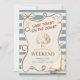 Un décor de week-end de bachelorette d'inspiration côtière avec des rayures ondulées ludiques, un cadre de ruban dessiné à la main et un centre de coquillages pastel. Les tons bleus doux et l'ambiance balnéaire en font un endroit idéal pour une célébration de plage pré-mariage remplie de soleil et d'amitié.