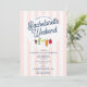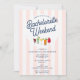 A colorful hand drawn watercolor cocktails design featuring different types of alcoholic drinks. A beautiful design perfect for Bachelorette weekend parties. This Bachelorette Party invitation includes a weekend itinerary on the back. A retro modern vintage pink and white striped Bachelorette weekend invitation.