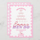 Bachelorette rouge et rose Wavy Weekend Hen Do Invitation. Avec Red et rose Retro Wavy Border avec Hen Party Bachelorette Party Itinéraire.