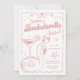 Cette invitation à la bachelorette chic et ludique présente une palette de couleurs rose et blanche avec un flamant fantaisiste et un design de ballon de plage. La police de script ajoute une touche d'élégance, tandis que les illustrations ludiques créent une ambiance amusante et festive. Parfait pour un bain de plage décontracté ou une fête autour de la piscine, cette invitation fera le bonheur de vos invités ! Customisez le texte avec les détails de votre fête et vous êtes prêt à célébrer!