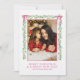 Cette carte de Noël a un design préppy et grand-millénaire avec un swag de vacances à feuillage persistant avec des arcs qui encadrent votre photo. Le bas a un texte fuchsia qui dit "Joyeux Noël". Vous pouvez personnaliser avec un nom et votre initiale. Le dos a une treillis de coordination avec arcs et rayures motif.