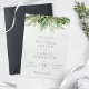 Belles invitations de mariage avec des illustrations d'aquarelle botanique peintes à la main de verdure hivernale, branches de pin et d'épinette, cônes et baies sèches. Un choix parfait pour les mariages à thème hiver ou Noël.