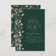 Invitez vos invités à célébrer dans le style avec cette invitation de baigneuse de mariage bohème aux fleurs sauvages dans un riche vert émeraude. Avec des florales aquarelles peintes à la main et des accents bohémiens terreux, ce design allie le charme rustique à l'élégance intemporelle. Parfait pour les fêtes de jardin, les baigneuses en plein air ou les célébrations inspirées de la nature, la mise en page met en valeur les détails de votre événement tout en ajoutant une touche chic et romantique.