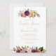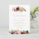 Cette invitation de baignoire de couple tropical boho plume sauvage or est parfaite pour une baignoire de mariage moderne. Le design présente des plumes sauvages brunes peintes à la main, des fleurs jaunes boho, blanches, violettes, roses, blush, bordeaux et des baies bleues soigneusement disposées en de beaux bouquets.