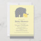 Cette douce invitation à la baby shower présente une silhouette adorable d'éléphant gris mère avec son précieux bébé éléphant jaune, sur un fond jaune ensoleillé à pois. La palette jaune et gris lumineuse et joyeuse est un choix audacieux et neutre pour toute célébration de baby shower. Tout le texte est entièrement personnalisable pour votre événement.