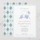 Classique avec une touche d'invitation de bain de bébé de thème de golf bleu clair et vert sauge avec un chariot de golf peint à la main avec des ballons et une double bordure. Tous les éléments d'aquarelle ont été peints à la main par moi avant d'être numérisés. Le verso de l'invitation est un motif argyle vert sauge et bleu clair, créé numériquement par moi.