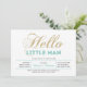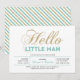 Célébrez une journée spéciale pour votre proche avec cette invitation moderne pour une fête prénatale de bébé ! Ce design présente une typographie élégante "Bonjour Petit Homme" avec une texture dorée pailletée et un thème de couleur menthe.