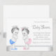 Jolie invitation de bain de bébé jumeaux rose et bleu. Cette invitation de bain de bébé prince et princesse mignonne est facilement personnalisable pour votre événement en ajoutant vos détails d'événement, style de police, taille et couleur de police, et libellé. Cette invitation de bain de bébé prince et princesse rose et bleu adorable convient parfaitement à une fête de révélation du sexe.