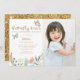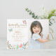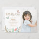 Carte modèle d'invitation à la fête d'anniversaire douce avec aquarelle rose et papillon à la menthe avec faux or jardin floral. Le texte en haut dit "papillon embrasse et souhaite l'anniversaire." Parfait pour une fête de fille au printemps. Vous pouvez également ajouter la photo de votre fille.